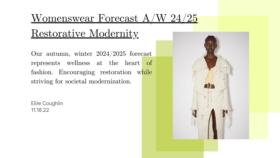A trend forecast was the final assignment for my fashion forecasting class. We spent time studying fashion history to get a better understanding of the effects world events have on fashion trends. We also took a look at the colour, textile and womenswear forecasts for the upcoming season, A/W 23/24. This gave us a better foundation to write our own womenswear forecasts for the A/W 24/25 season.